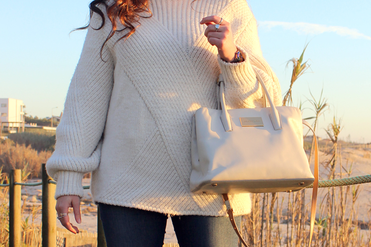 Lembra-se do último Jo's Co? Fotografei a Marta neste sítio, e claro, aproveitei a deixa e pedi-lhe que me fotografasse a mim também. Estava um belo dia de inverno aquele, tal como o de hoje. Frio mas cheio de sol, e por isso fácil de suportar sem casacos, apenas com camisolões quentinhos. E como eu adoro este camisolão que encontrei nos saldos no ano passado!!! Não o costumo usar no trabalho porque vá, vocês sabem, não quero sair de lá com uma mancha de óleo nesta malha linda... Por isso, sempre que posso lá sai ele da gaveta. É mesmo macio e quente e eu amo amo amo! Conjuguei com umas jeans básicas, as sapatilhas que o meu namorado me deu no natal, a mala que ele me deu nos anos e os óculos que eu lhe ofereci a ele mas que adoro usar também de vez em quando, quem nunca? Gostam?